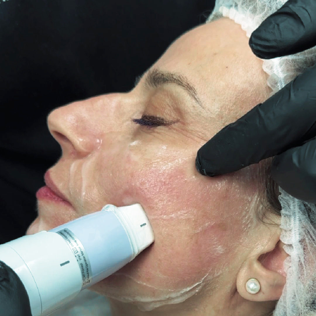 Η θεραπεία είναι ανώδυνη χάρη στο ενσωματωμένο σύστημα ψύξης που προστατεύει την επιδερμίδα κατά την εφαρμογή των ραδιοσυχνοτήτων.